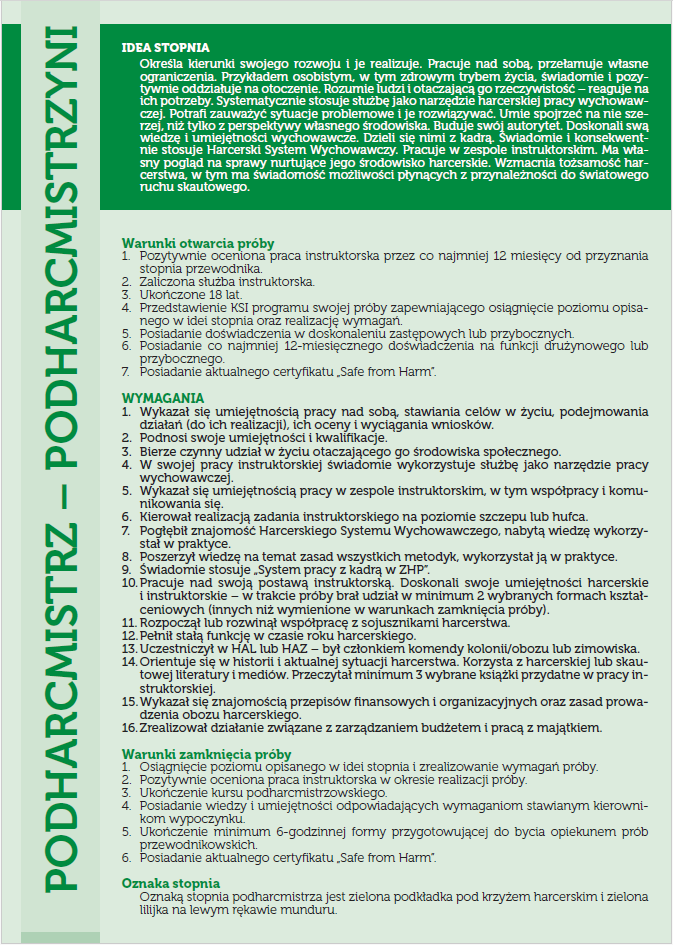 · potwierdzanie stopni instruktorskich osobom ponownie ubiegającym się o członkostwo w ZHP oraz osobom, które stopnie instruktorskie zdobyły w innych organizacjach harcerskich,